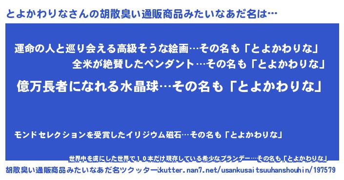 | 恥ずかしいあだ名 | 『プリティーとよかわりな』『とよっちょ』 |