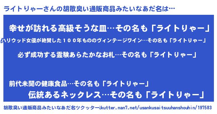 | 男性向けラノベタイトル風あだ名 | 『緋弾のライトリャー』 |