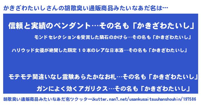 | 意味不明あだ名 | 『住所不定無職かきざわたいし(43歳)』 |