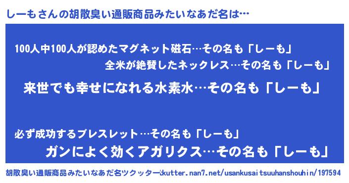 | ヒーロー風カッコイイあだ名 | 『ネオシーモ』『正義の使者しーも』 |