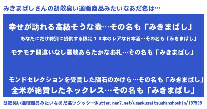 | 男性向けラノベタイトル風あだ名 | 『はたらくみきまばしさま!』 |
