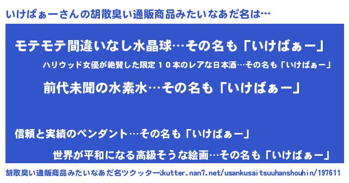 | 意味不明あだ名 | 『永久保存いけばぁー』 |