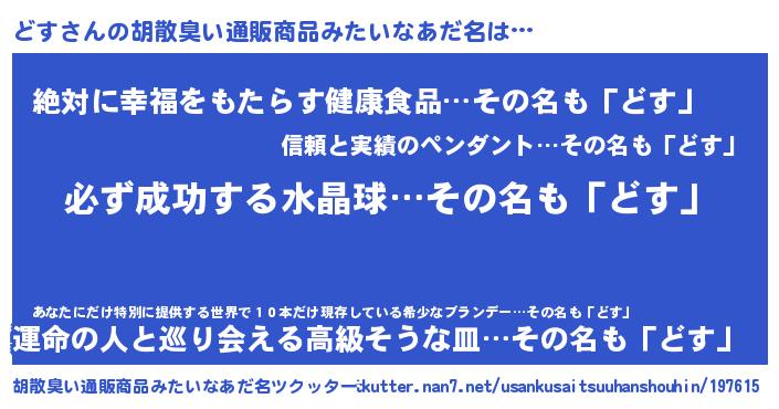 | 男性向けラノベタイトル風あだ名 | 『どすの憂鬱』 |