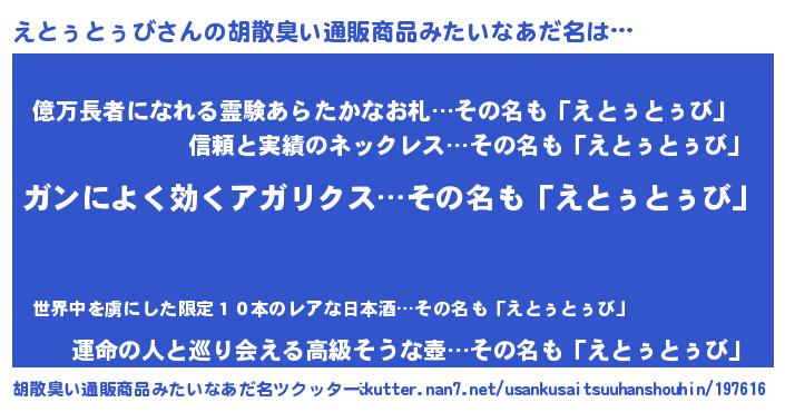 | 肩書あだ名 | 『えとぅとぅび閣下』『えとぅとぅび店長』 |