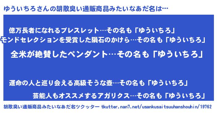 | 意味不明あだ名 | 『とにかく怪しいゆういちろ』 |