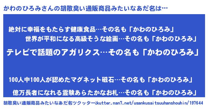 | 意味不明あだ名 | 『自称かわのひろみ』 |