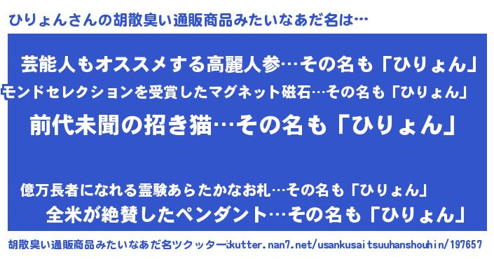 | 意味不明あだ名 | 『永久保存ひりょん』『自称ひりょん』 |