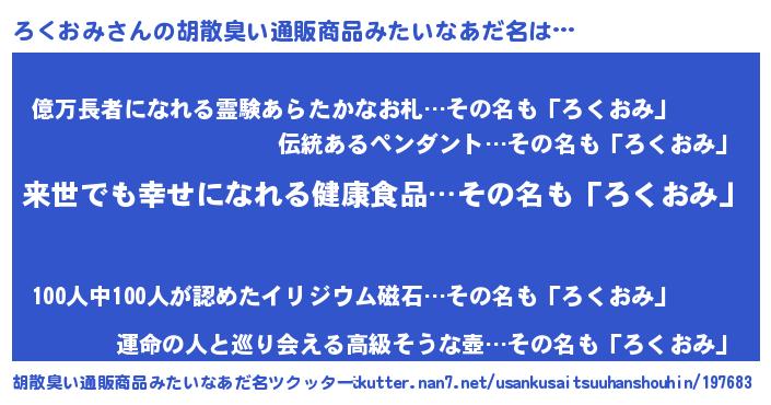 | ヘコむあだ名 | 『ろくおみ(爆)』『ろくっふぃ~』 |
