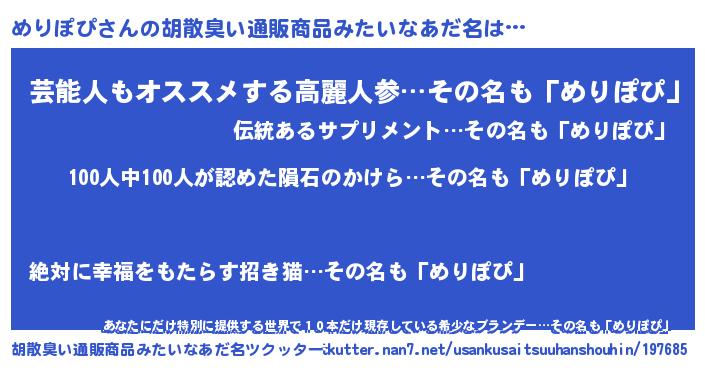 | ヘコむあだ名 | 『めりっちょ』『めりぽぴ(笑)』 |