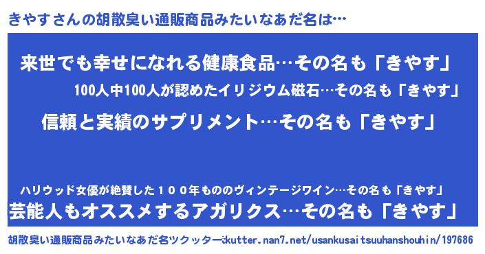 | ヘコむあだ名 | 『きやを』『きやす(笑)』『牛乳』 |