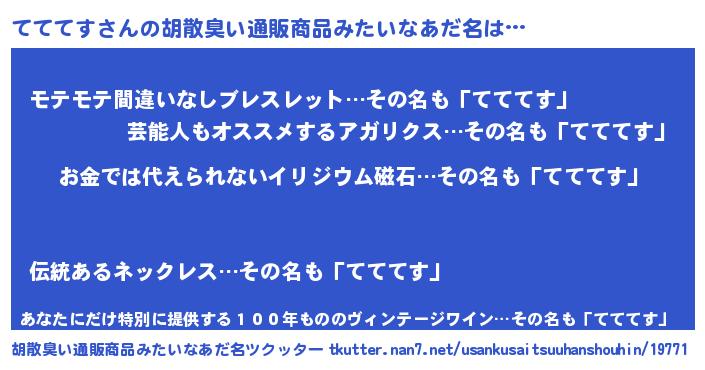 | 意味不明あだ名 | 『なめこ科てててす属』『自称てててす』 |