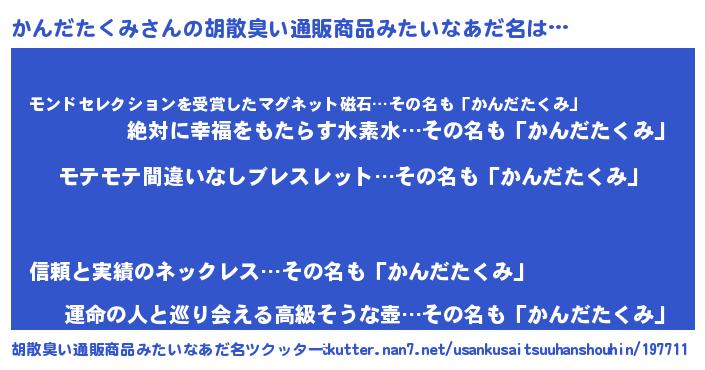 | 意味不明あだ名 | 『ペロリンかんだたくみ』 |
