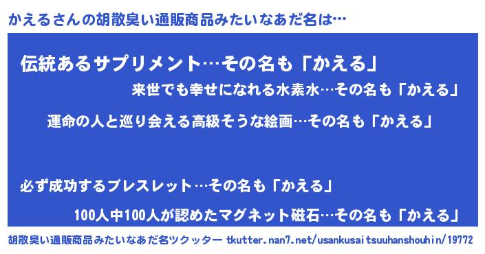 | ヒーロー風カッコイイあだ名 | 『ウルトラかえるマン』『幻影騎士カエ』 |