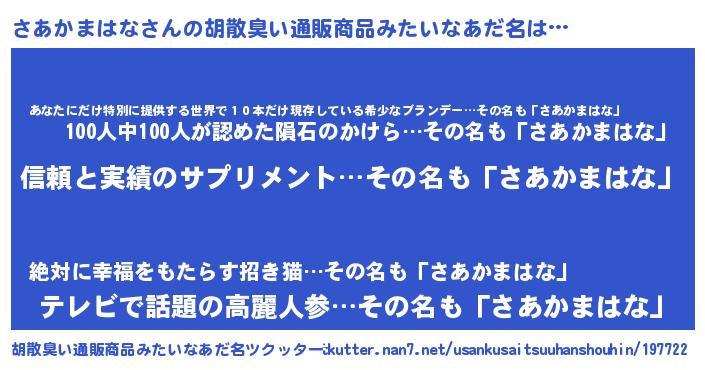 | ヘコむあだ名 | 『さあお』『さあかまはな(苦笑)』 |