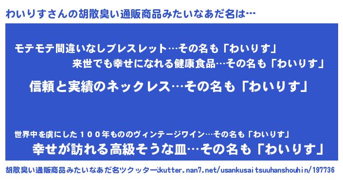 | 意味不明あだ名 | 『とにかく怪しいわいりす』 |