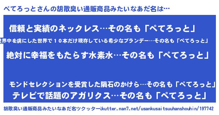 | 意味不明あだ名 | 『永久保存ぺてろっと』『自称ぺてろっと』 |
