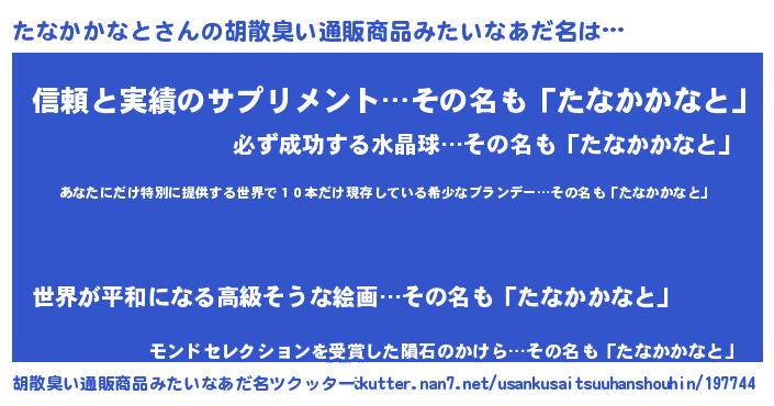 | 意味不明あだ名 | 『住所不定無職たなかかなと(77歳)』 |