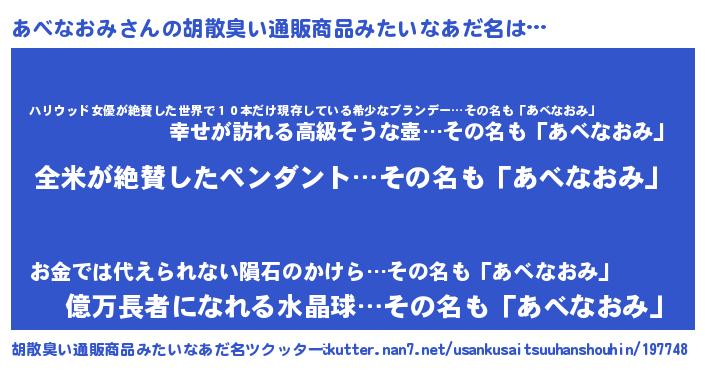 | 意味不明あだ名 | 『とにかく怪しいあべなおみ』 |
