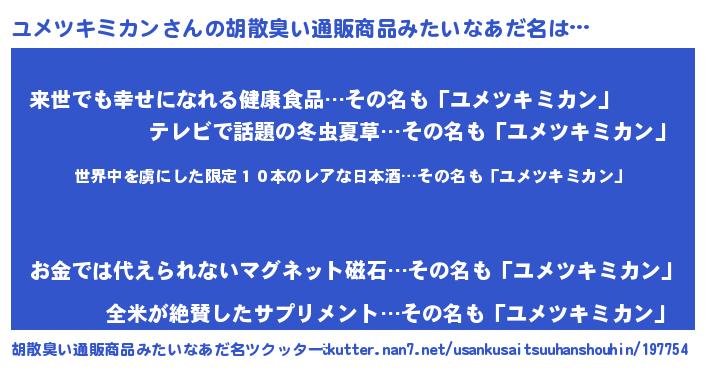 | 意味不明あだ名 | 『なめこ科ユメツキミカン属』 |