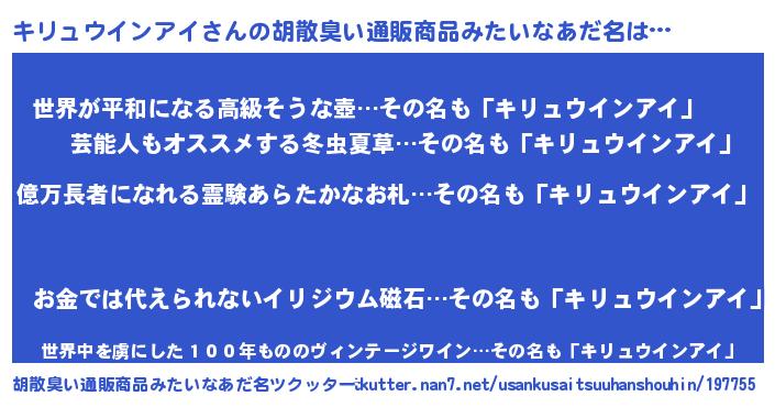| 欧米人風あだ名 | 『トリンドルキリュウインアイ』 |