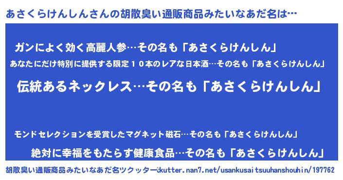 | ヘコむあだ名 | 『あさっぺ』『あさくらけんしん(小並感)』 |