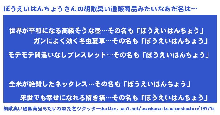 | 肩書あだ名 | 『ぼうえいはんちょう社長』 |