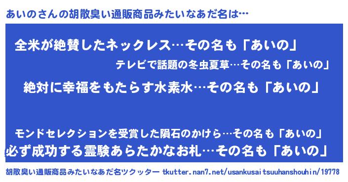 あいのさんの胡散臭い通販商品みたいなあだ名をツクッター!