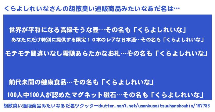 | 恥ずかしいあだ名 | 『プリティーくらよしれいな』『くらちん』 |