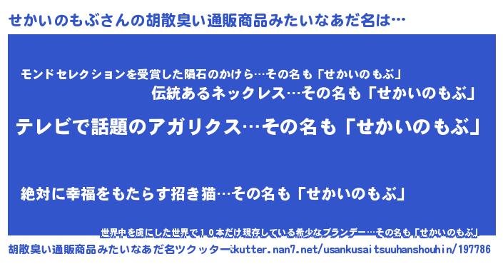 | 意味不明あだ名 | 『自称せかいのもぶ』 |