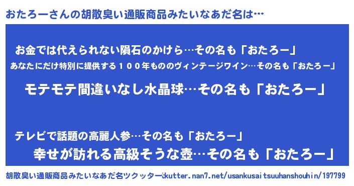 | 意味不明あだ名 | 『ペロリンおたろー』『自称おたろー』 |