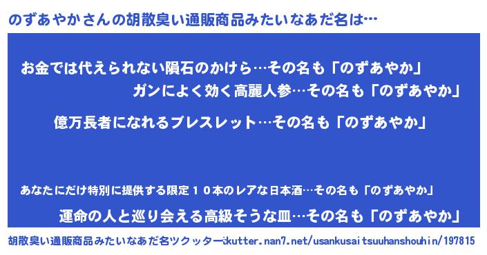 | 男性向けラノベタイトル風あだ名 | 『ノズアヤカアートオンライン』 |