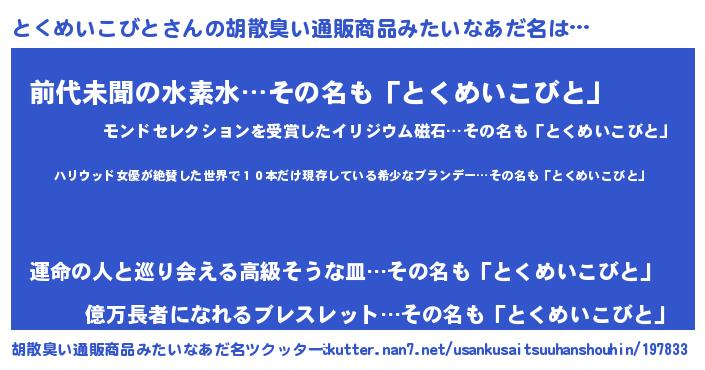 | ヘコむあだ名 | 『とくめいこびと(遠い目)』『とくふぇ~』 |