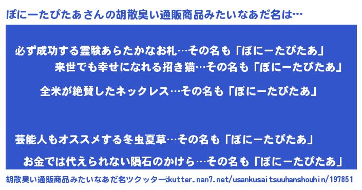 | 意味不明あだ名 | 『とにかく怪しいぼにーたぴたあ』 |