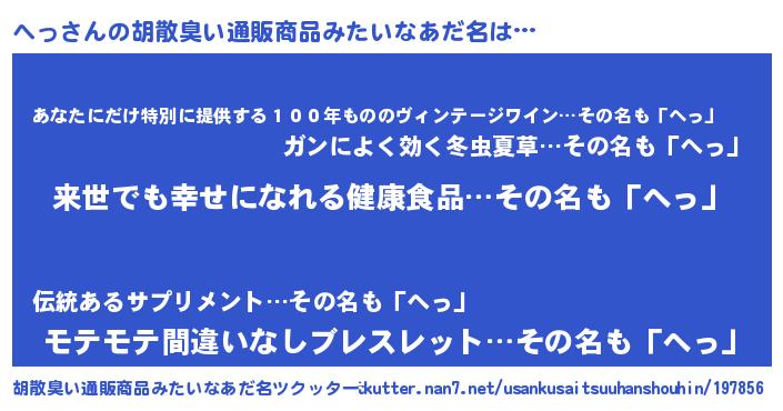 へっさんの胡散臭い通販商品みたいなあだ名をツクッター!