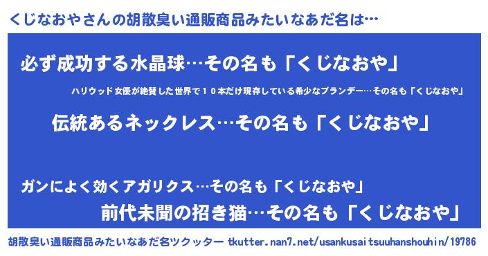 | 意味不明あだ名 | 『とにかく怪しいくじなおや』 |