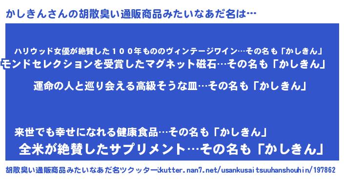 | 意味不明あだ名 | 『かしきんフォーエバー』 |