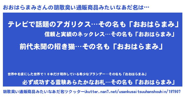 | ヘコむあだ名 | 『おおはらまみ(小並感)』『おおふぇ~』 |