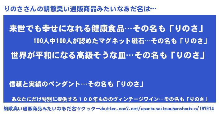 | 意味不明あだ名 | 『りのさフォーエバー』『永久保存りのさ』 |