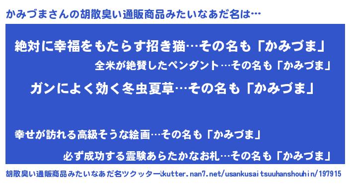 | 意味不明あだ名 | 『自称かみづま』『永久保存かみづま』 |