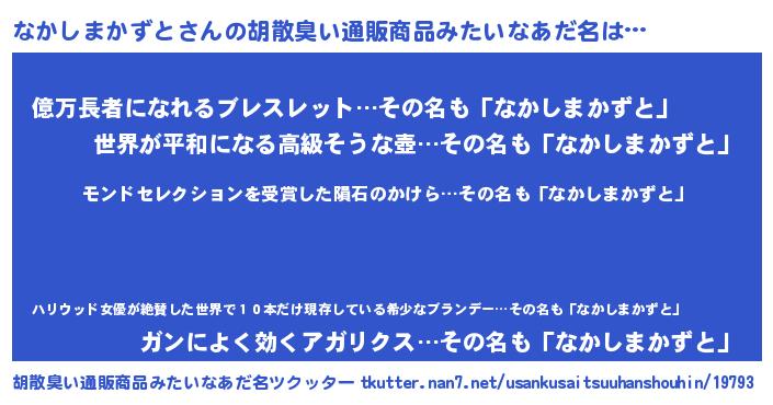 | 男性向けラノベタイトル風あだ名 | 『ノーゲーム・ノーナカシマカズト』 |