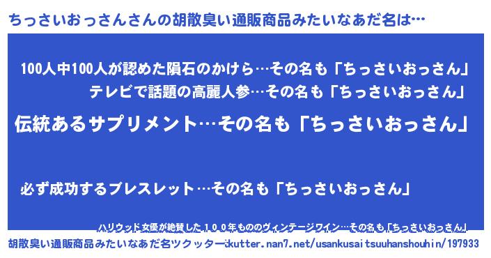 | 男性向けラノベタイトル風あだ名 | 『ちっさいおっさんに滅ぼされるだけの簡単なお仕事です』 |