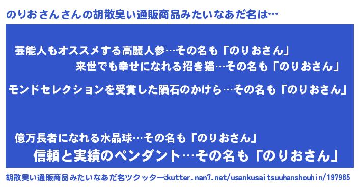 | ヘコむあだ名 | 『のりっちょ』『のりおさん(笑)』 |