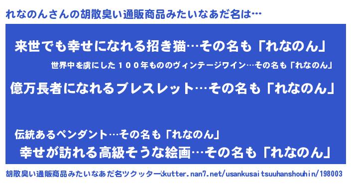 | 欧米人風あだ名 | 『アンジェラ・れなのん』 |