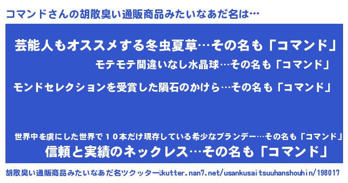 | 欧米人風あだ名 | 『ダニエルコマンド』『ウサインコマンド』 |