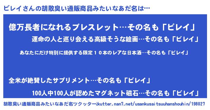 | 意味不明あだ名 | 『住所不定無職ビレイ(65歳)』 |