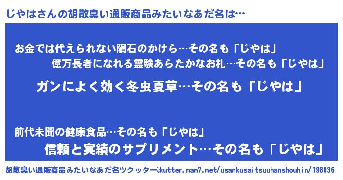 | 意味不明あだ名 | 『自称じやは』『眠気覚ましガムじやは味』 |