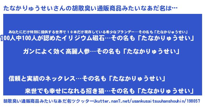| ヘコむあだ名 | 『たなかりゅうせい(小並感)』『たなっちょ』 |