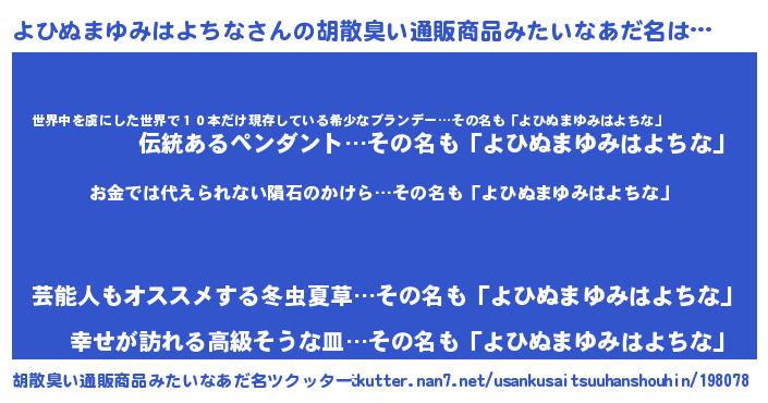 | 肩書あだ名 | 『よひぬまゆみはよちな学科長』 |