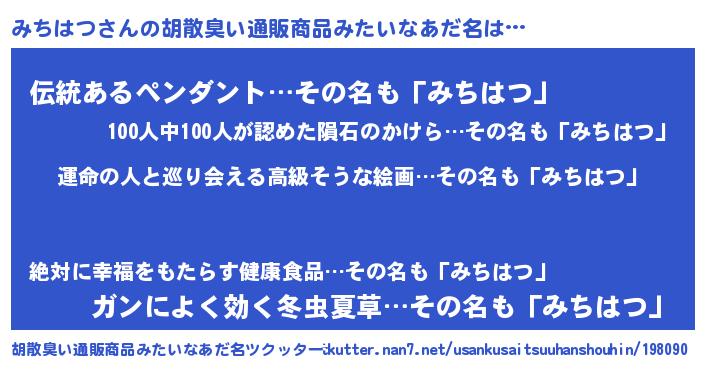 | 意味不明あだ名 | 『ヨモギ科みちはつ属』『自称みちはつ』 |