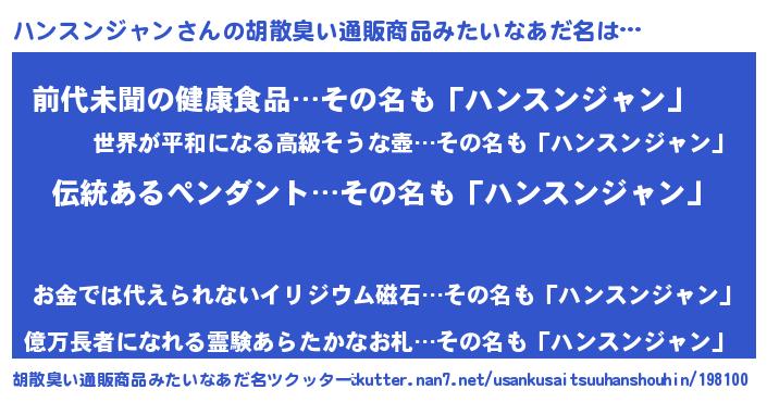 | 意味不明あだ名 | 『とにかく怪しいハンスンジャン』 |